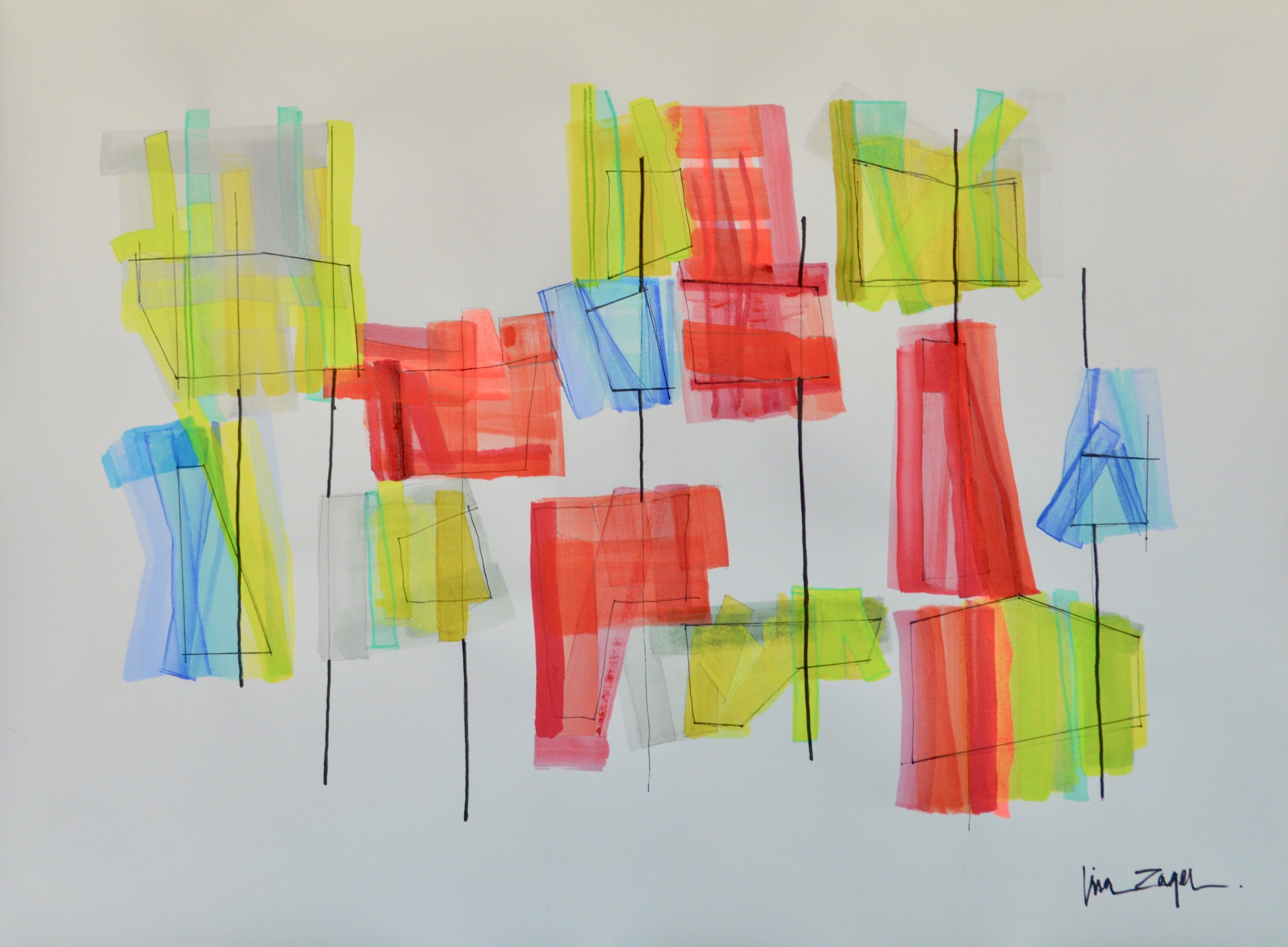 Lisa is a modern abstract artist who also owns an interior design firm in Nashville. Her work with residential work, as well as developers and commercial clients have helped her understand the value of scale, balance, and color placement. Raised in Cullman, Alabama, Lisa studied art at Stephens College. She then went onto the Harrington Institute of Interior Design in Chicago, IL. While there, she continued to study painting at the Art Institute of Chicago, as well. She is truly inspired by pattern, furniture, buildings and, of course, color. She is drawn to the confluence of what colors and objects work well next to one another and the necessary space in between.She especially admires the work of Paul Rand, an American Modernist (1914-1966).