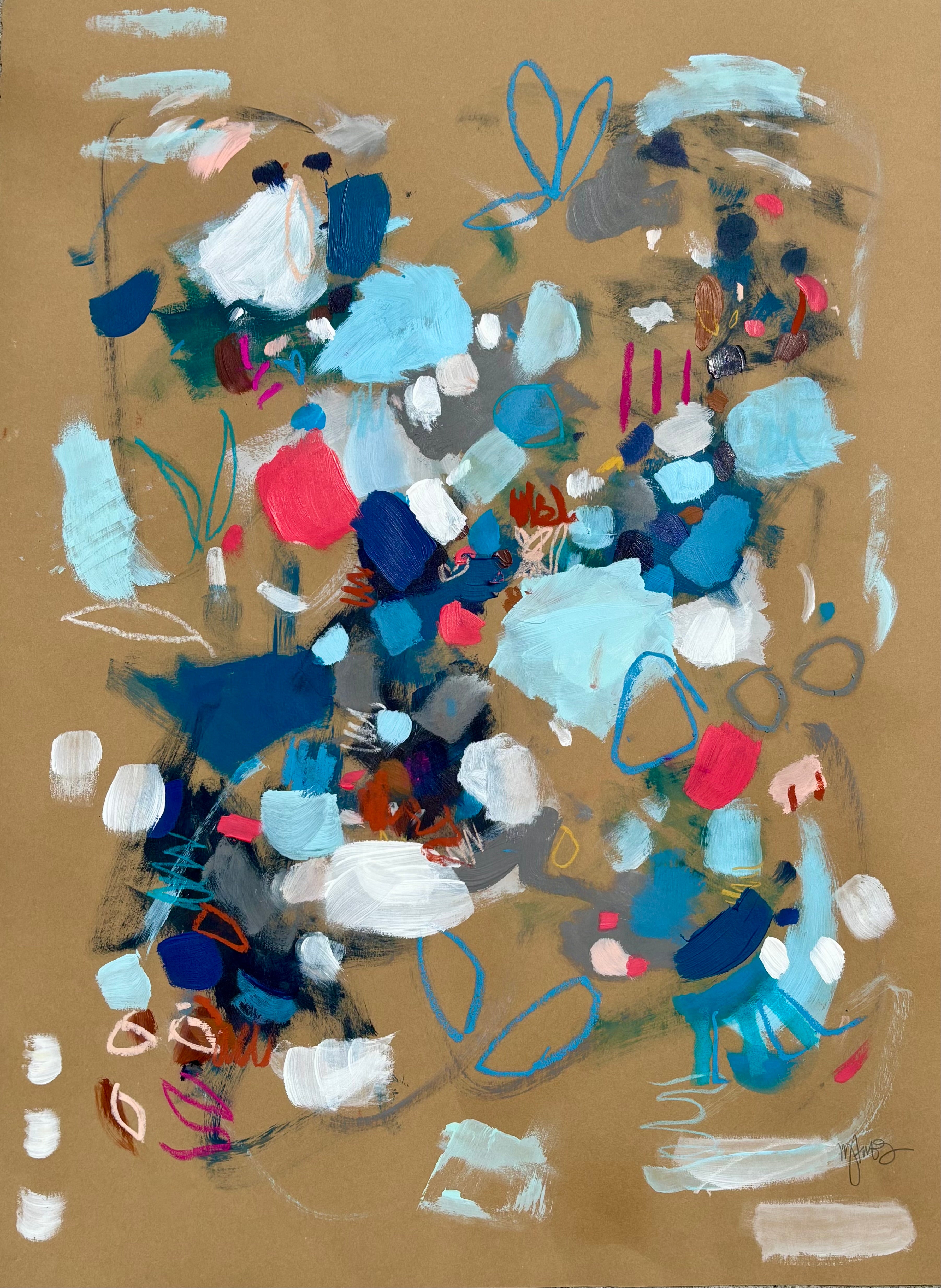 Michele James is an abstract painter known for her large works on canvas. She is inspired by color and movement and uses strong brushstroke and varied marks on neutral canvases with pops of bold colors. She paints with acrylics , and uses chalk, oil pastels and pencil to vary the texture and medium of her works. She is influenced by the colors in nature, the lightness and space of the sky, and the texture and depth of landscapes. “I love to make people happy and for a client to add my painting to their home is wonderful compliment” Michele received a BFA in fine art and art history at Hunter College in New York, NY with a concentration in studio painting. Michele paints out of her home studio in Atlanta where she lives with her husband and three kids.