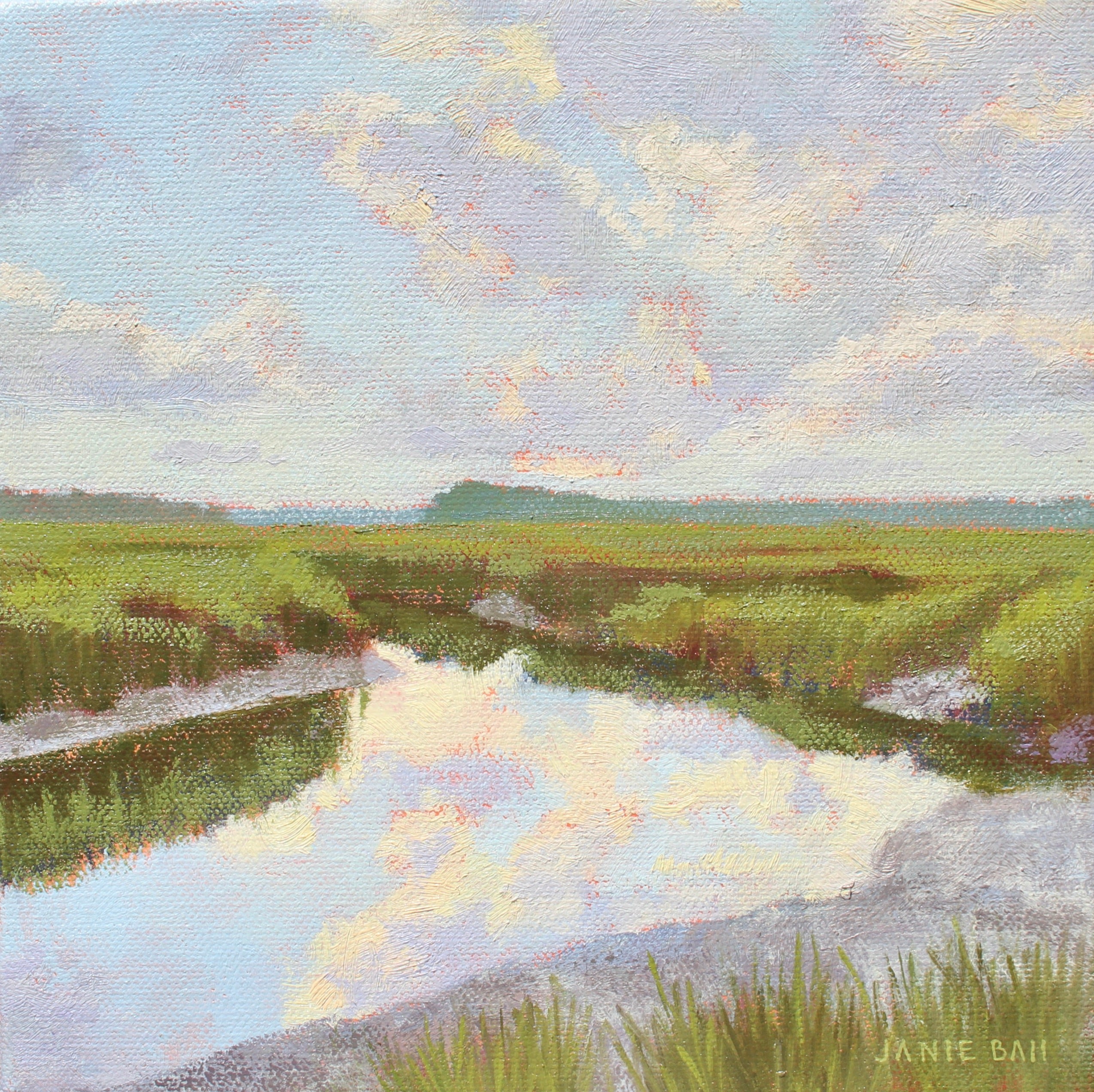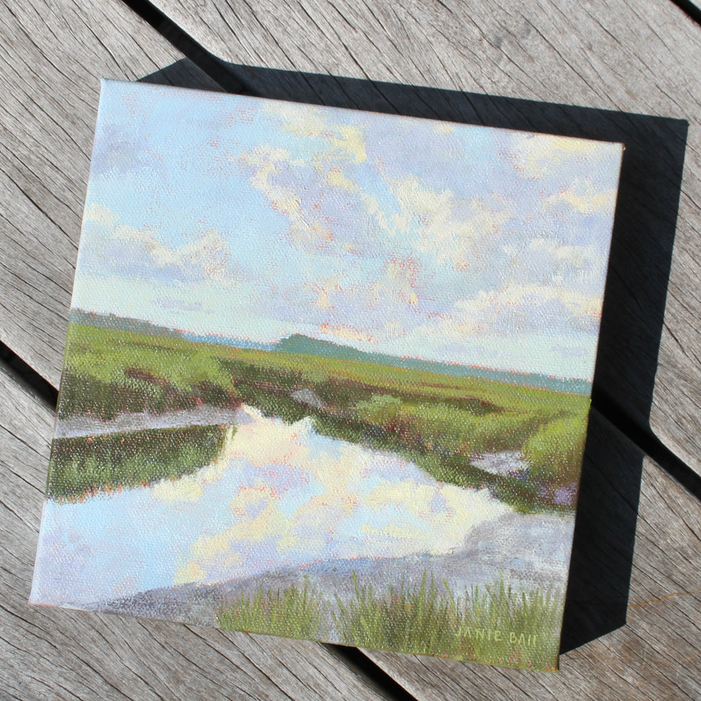 Janie Ball a Charleston native. The Rhode Island School of Design (RISD) graduate has had a successful marketing career winning ADDY and CASE Awards prior to returning to fine art full time. Her paintings are composed of bold thoughtful shapes of color which when visually combined by the viewer "paint" the image, be it en plein air, contemporary realism, or abstract expressionism. The Charleston Artist Collective member’s paintings are in private and corporate collections including the Belmond Charleston Place and MUSC Children’s Hospital. Janie’s work has been exhibited in solo and group shows, as far away as Portland, Maine. In Spring of 2017, her painting “Out of the Blue” was selected as the Community Choice Winner for ArtPop Street Gallery of Charleston, to be featured on an Adams Outdoor Advertising 14-foot x 48-foot billboard for a year. http://janieballpaints.com/