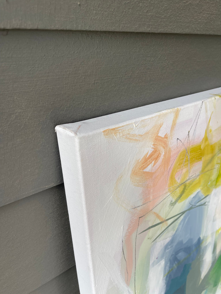 acrylic and oil pastel on gallery wrapped canvas