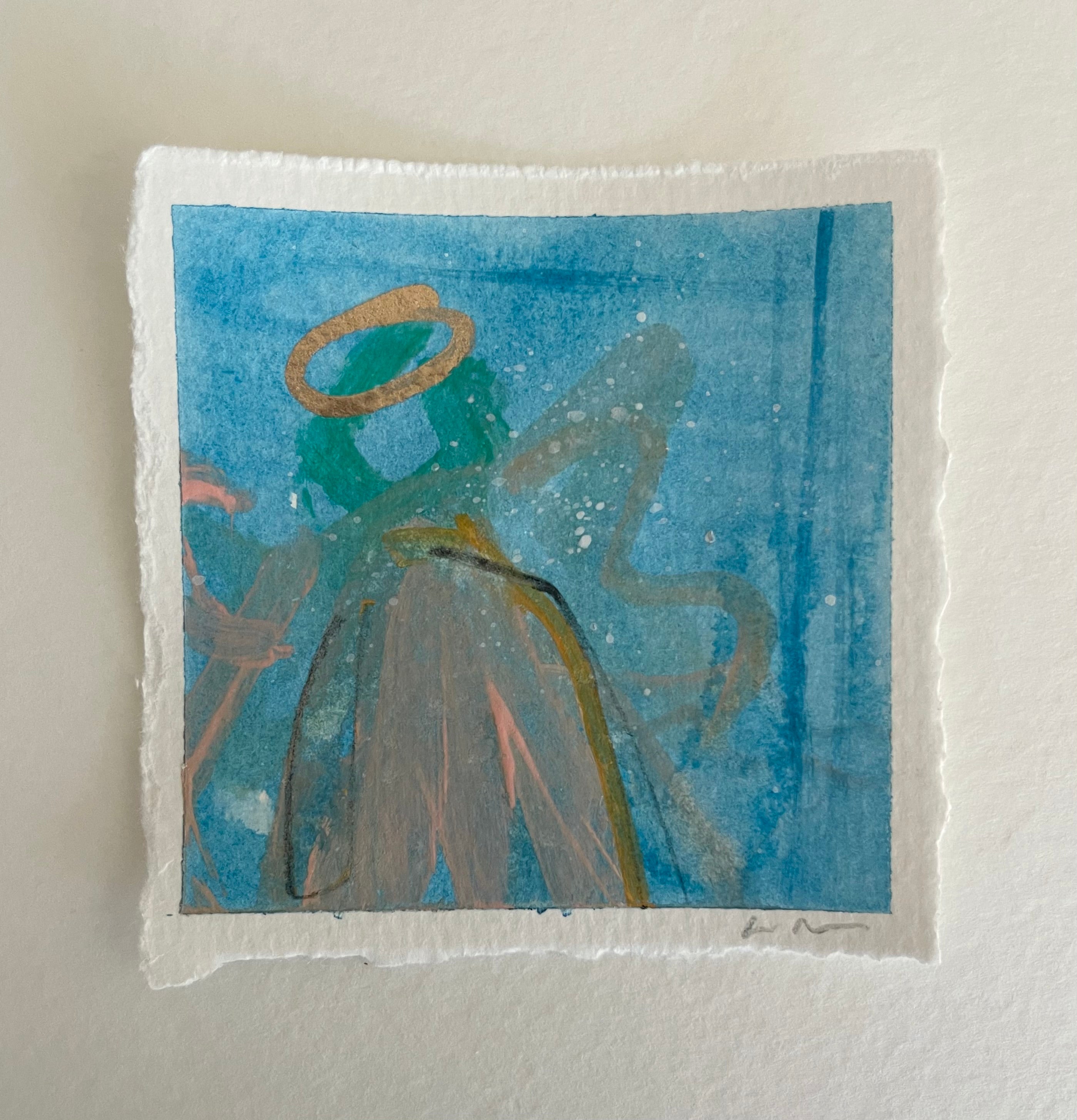 mixed media on deckled edge paper, in acrylic frame
