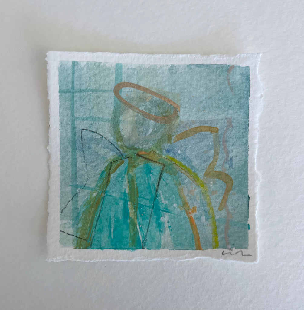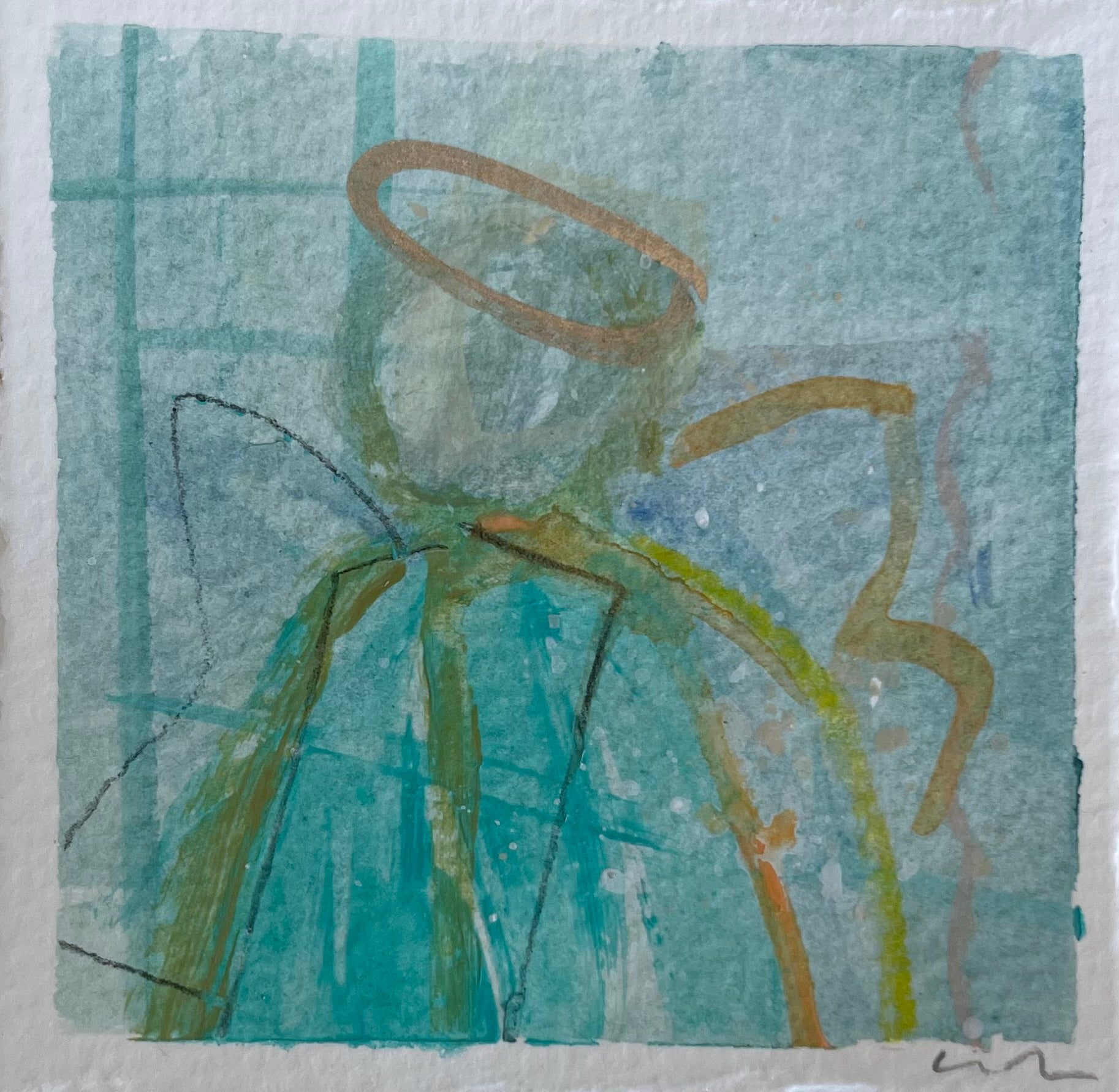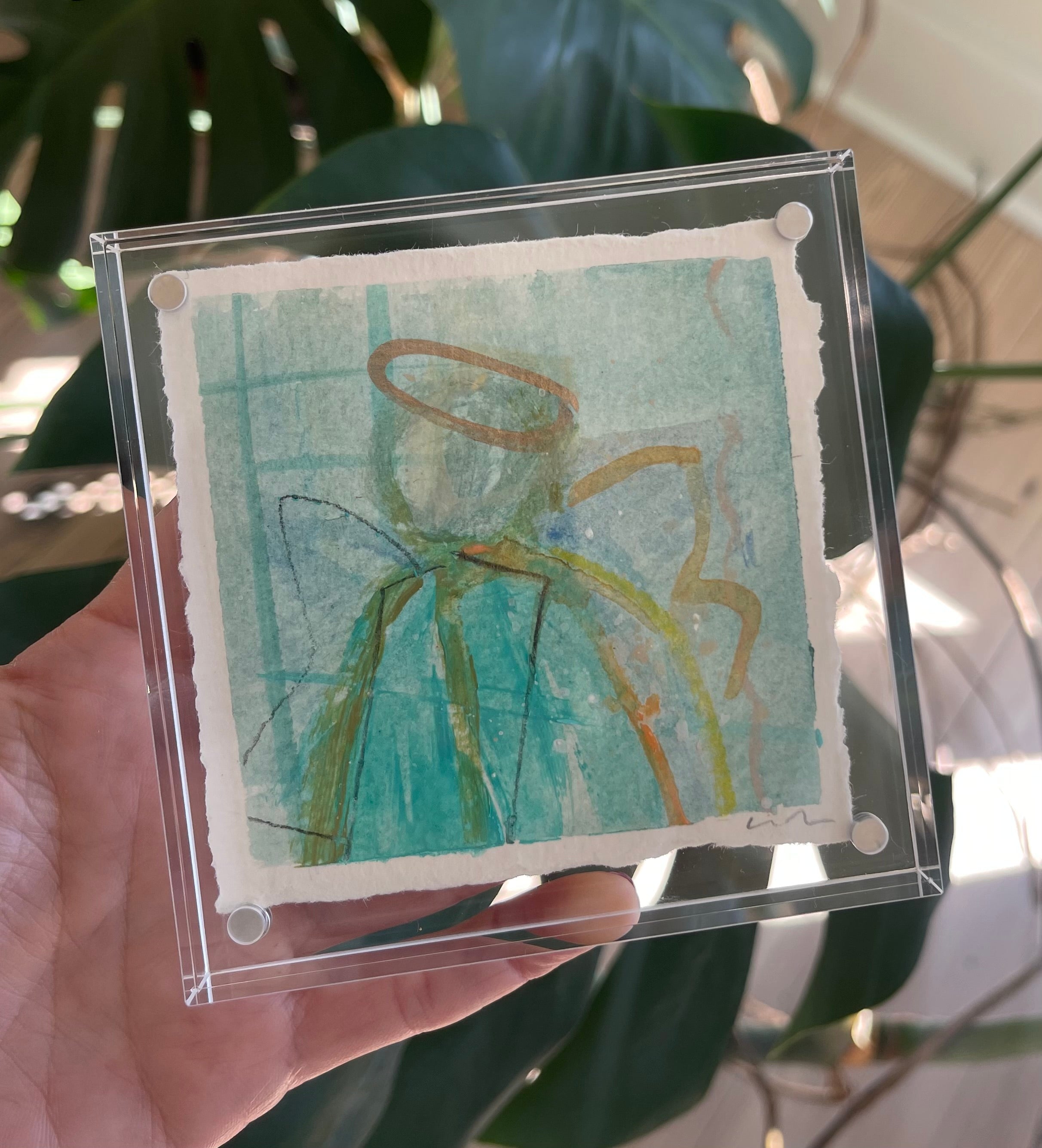 mixed media on deckled edge paper, in acrylic frame